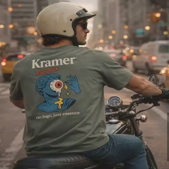 The Kramer Studios® No Logo, Just Essence Tee fuses surreal art with a bold statement.